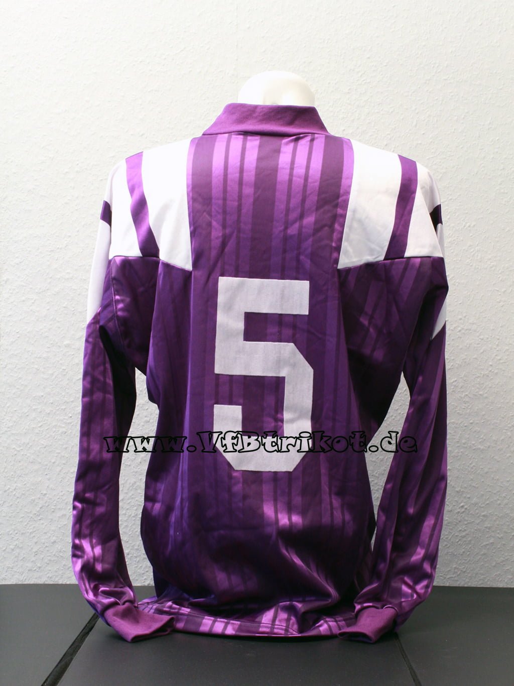 1993/94 + 1994/95 - Bundesliga - lila - langarm - Diese seltenen Lila Trikots kamen bei wenigen Auswärtsspielen über 2 Saisons zum Einsatz. Eins der begehrtesten VfB Trikots. Dieses Trikot gab es damals auch nicht im Fan Shop zum kaufen. In der Regel trug Alexander Strehmel die Nummer 5.