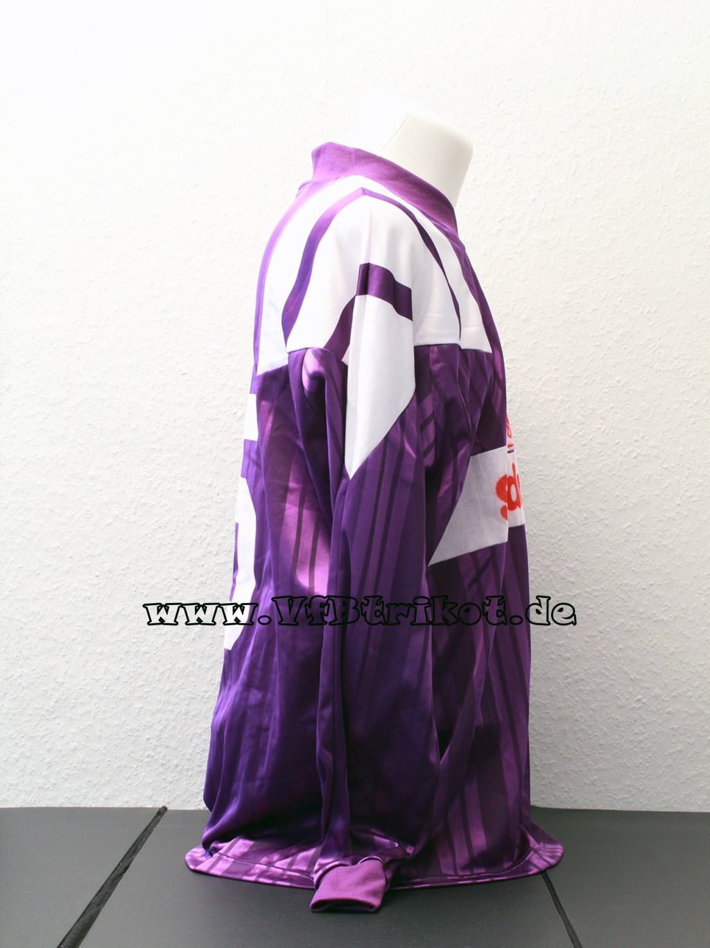 1993/94 + 1994/95 – Bundesliga – lila – langarm – Diese seltenen Lila Trikots kamen bei wenigen Auswärtsspielen über 2 Saisons zum Einsatz. Eins der begehrtesten VfB Trikots. Dieses Trikot gab es damals auch nicht im Fan Shop zum kaufen. In der Regel trug Alexander Strehmel die Nummer 5.