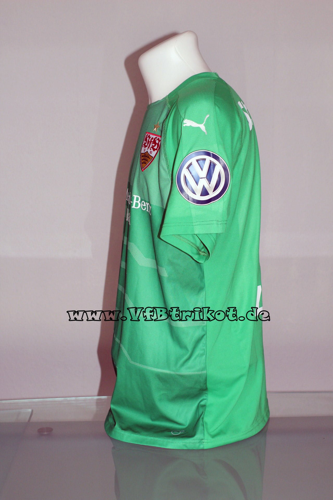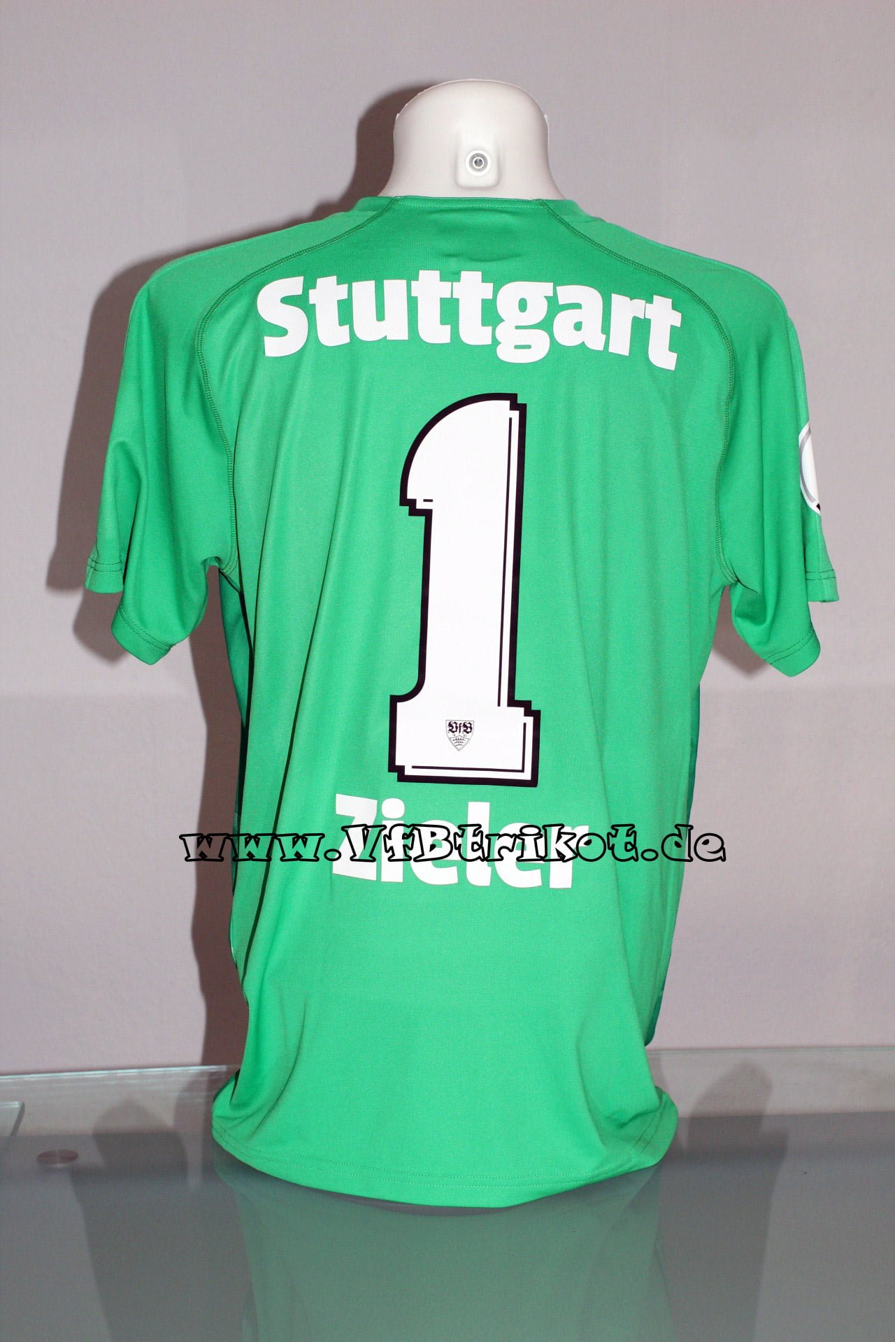 In den 80iger Jahren trug Helmut Roleder keine Adidas Trikots, er stellte eigene Trikots mit seinem Label her. Auf diesen Trikots (blau und grün) war kein VfB Wappen. Bei dieser Version handelt es sich um die Europapokal Version, da der Dinkelacker Schriftzug kleiner als normal ist. Dies war bei internationalen Spielen Vorschrift der Uefa.