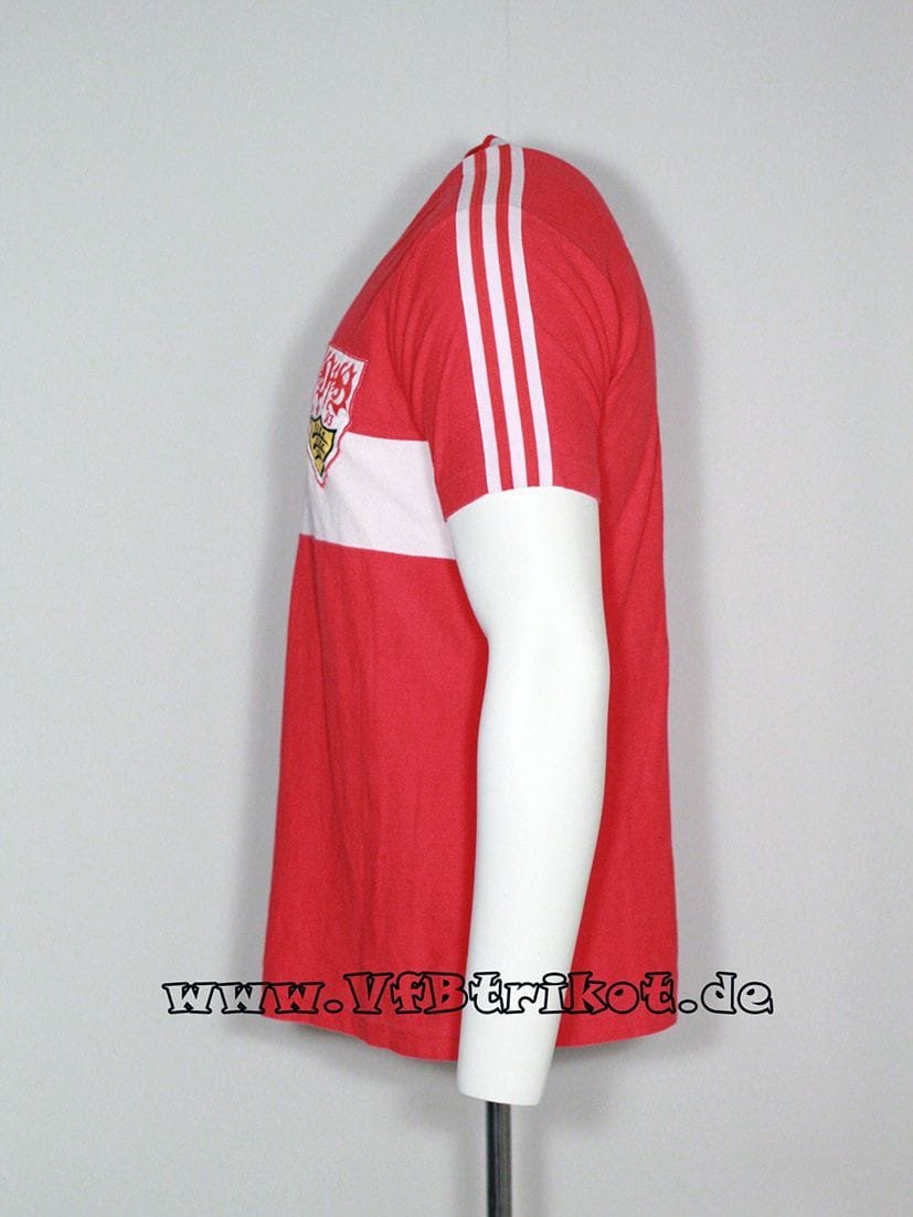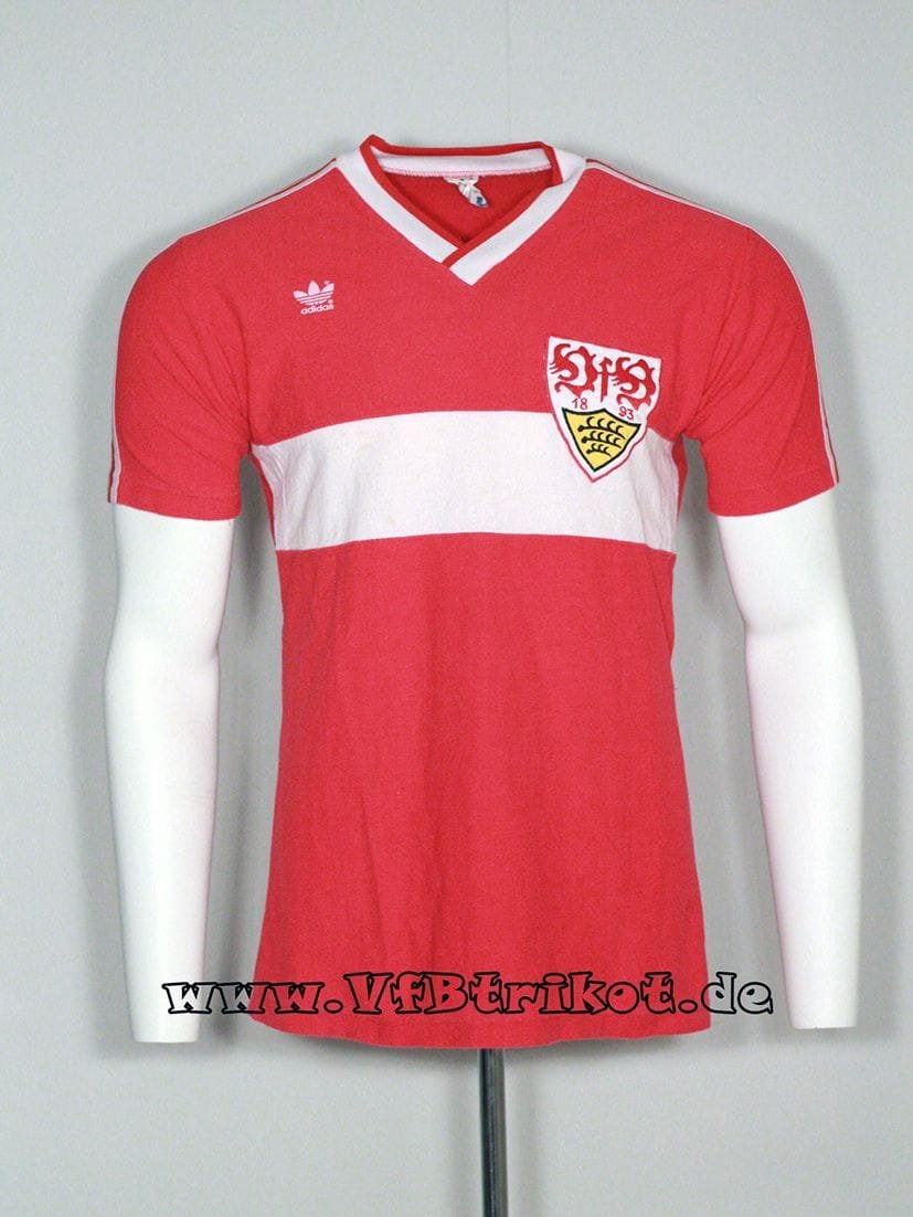In den 80iger Jahren trug Helmut Roleder keine Adidas Trikots, er stellte eigene Trikots mit seinem Label her. Auf diesen Trikots (blau und grün) war kein VfB Wappen. Bei dieser Version handelt es sich um die Europapokal Version, da der Dinkelacker Schriftzug kleiner als normal ist. Dies war bei internationalen Spielen Vorschrift der Uefa.