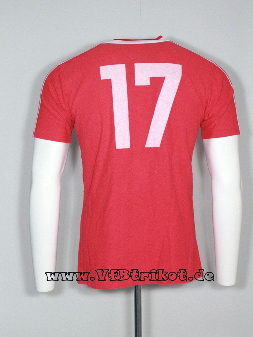 1985/86 – Jugend – rot – kurzarm – Rückennummer 17 – die Jugend trug in der Dinkelacker Zeit Trikots ohne Werbung, bzw auch mit Bauknecht Werbung