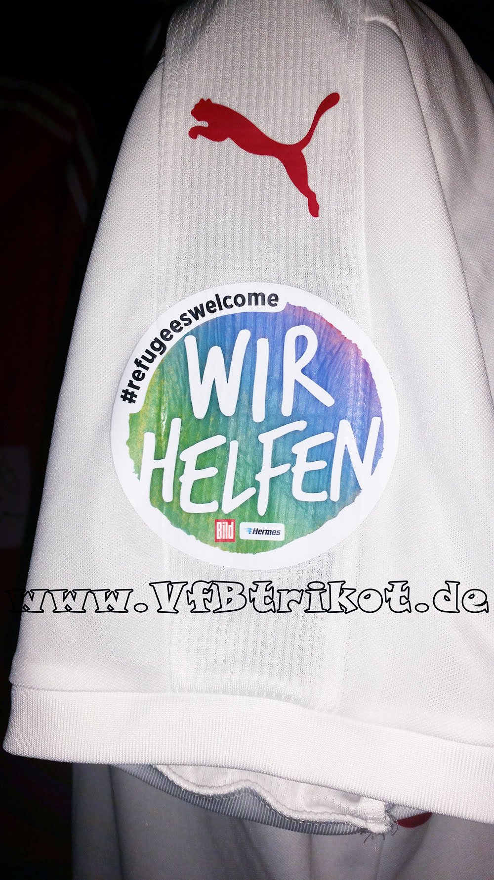 Martin Harnik – VfB Stuttgart matchworn Trikot – 2015/16 – VfB Stuttgart – Schalke 04 – Sondertrikot mit „Wir helfen“ Patch – weiß – kurzarm – DryCell‪