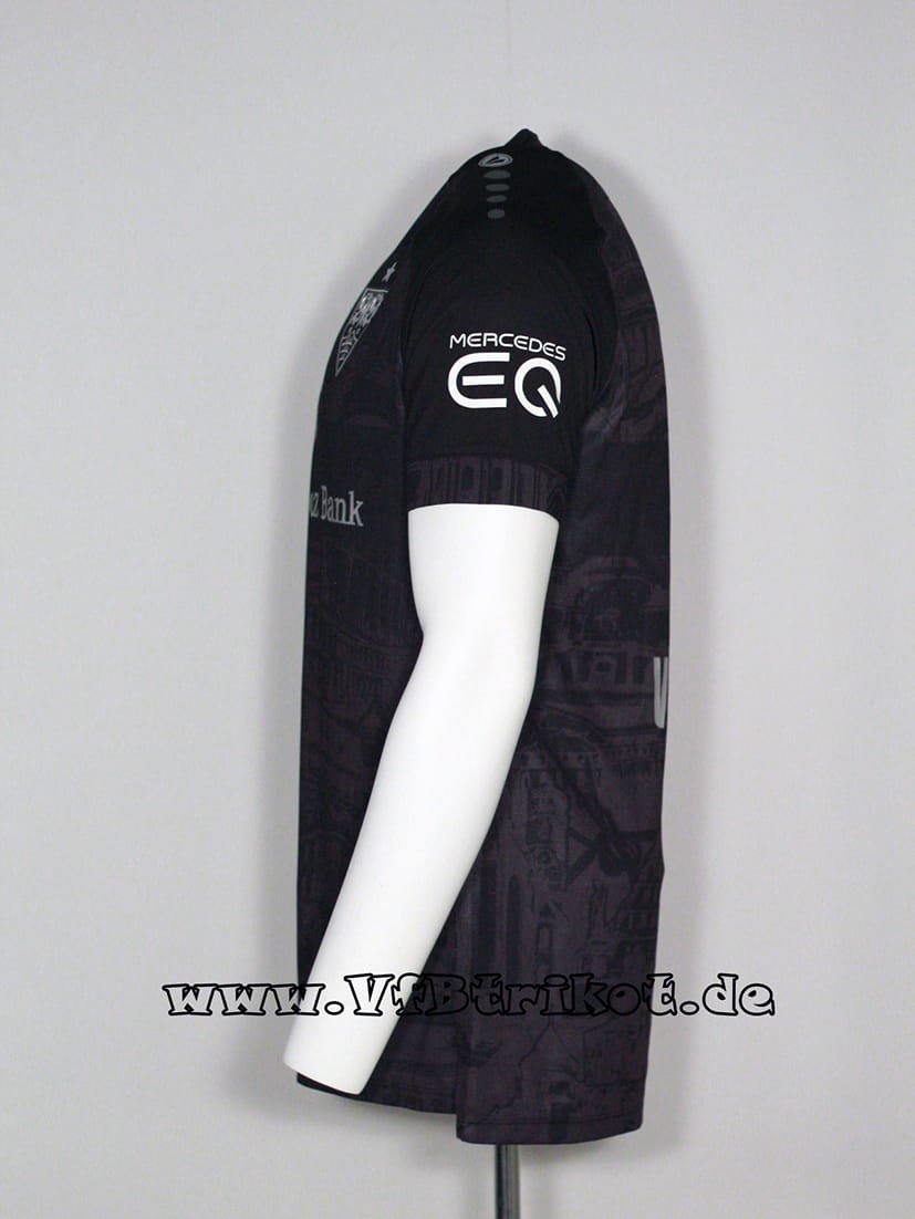 2022/23 – Bundesliga – Vielfalt Sondertrikot – schwarz – kurzarm – Tanguy Coulibaly – VfB-Wolfsburg – Im Rahmen des „Internationalen Wochen gegen Rassismus“ im deutschen Profifußball spiele der VfB mit den Regenbogenfarben im Brustring, Wappen und Ausrüster Jako Logo