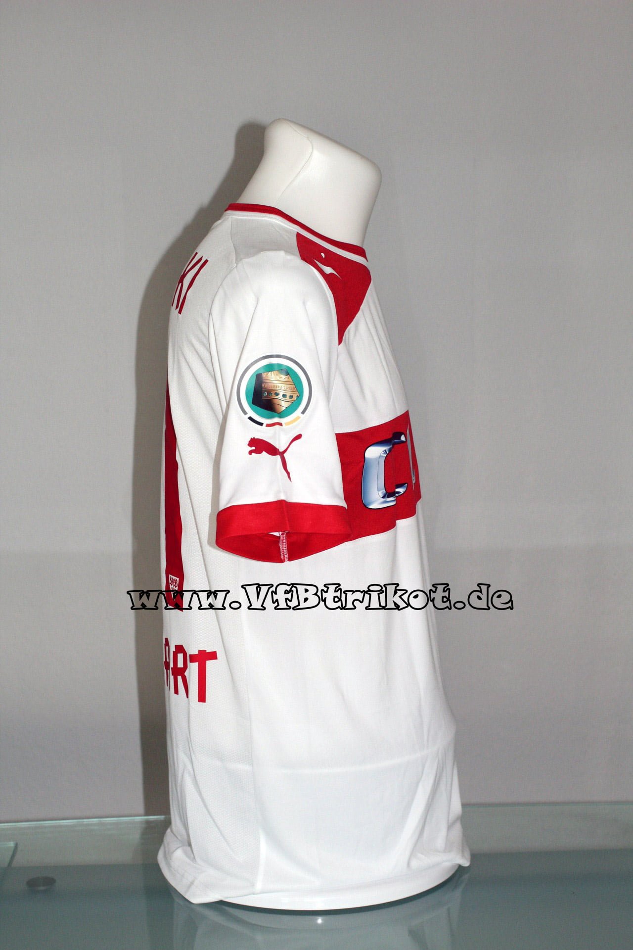 2012/13 - DFB-Pokal - weiß - kurzarm - CLA - mit diesem Trikot wurde im DFB-Pokal Halbfinale daheim gegen Freiburg gespielt. Trikots mit CLA Werbung wurden dann noch bei 4 weiteren Bundesliga spielen gespielt, aber dann mit Bundesliga Patch - Shinji Okazaki - VfB Stuttgart vs. SC Freiburg
