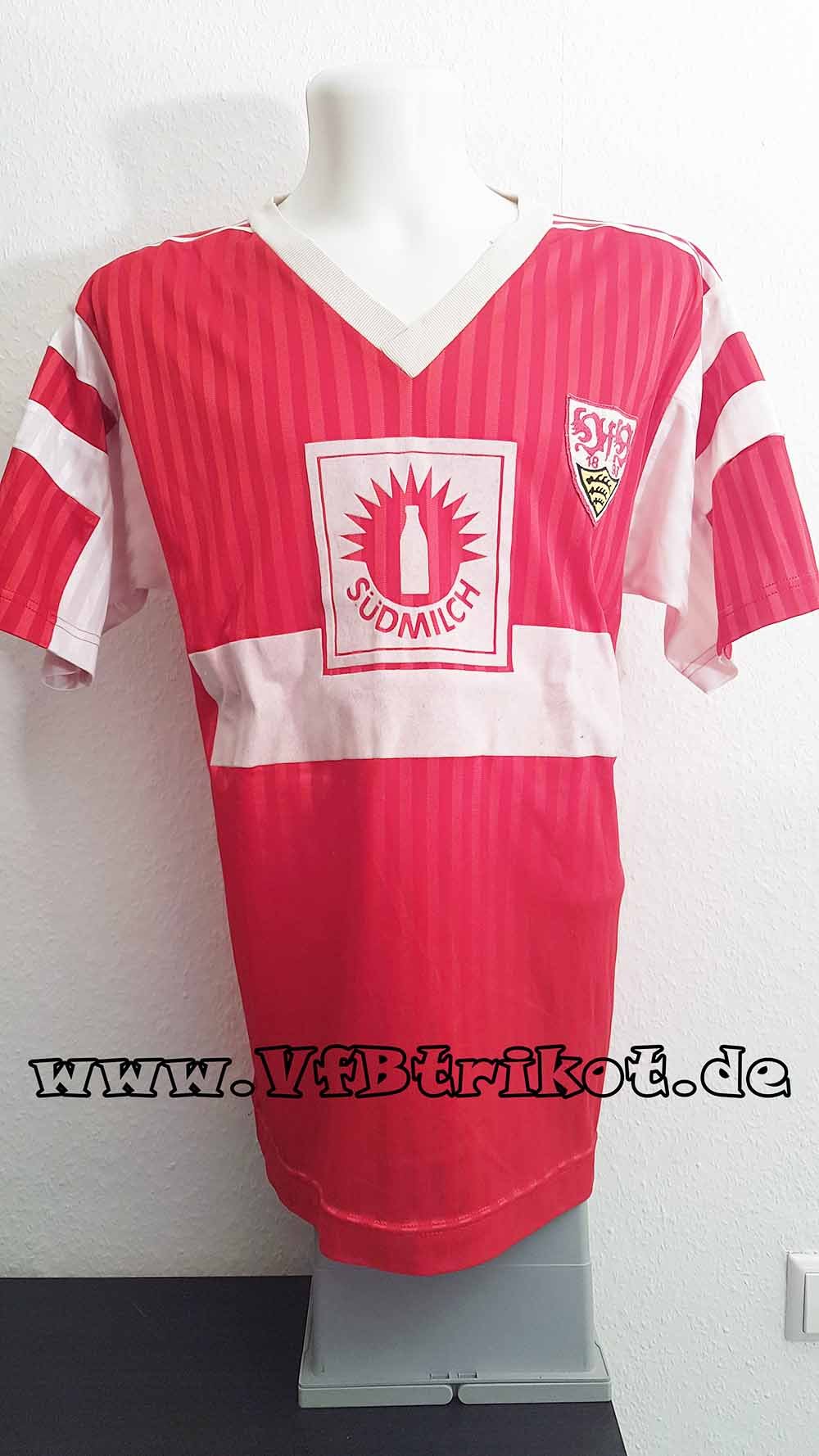 1988/89 – UEFA-Cup – VfB Stuttgart matchworn Trikot – Banyasz Tatabanya – VfB Stuttgart – rot – langarm – Sondertrikot – mit diesem Trikot wurde nur einmalig in Tatabanya gespielt