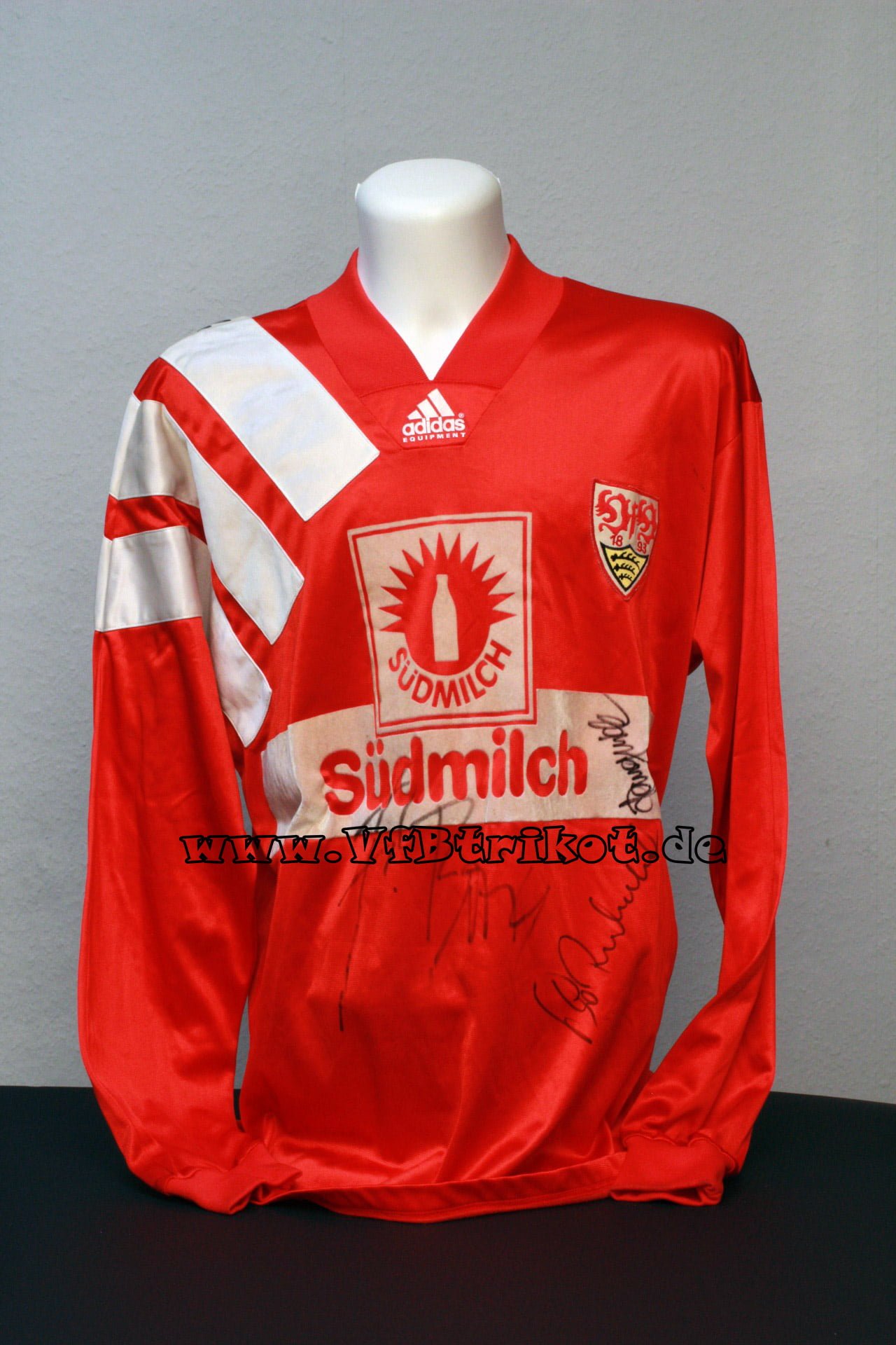 Bei unserer ersten Champions League-Teilnahme 1992/93 musste der neue Südmilch Schriftzug auf dem Brustring aufgrund der Größe weichen.