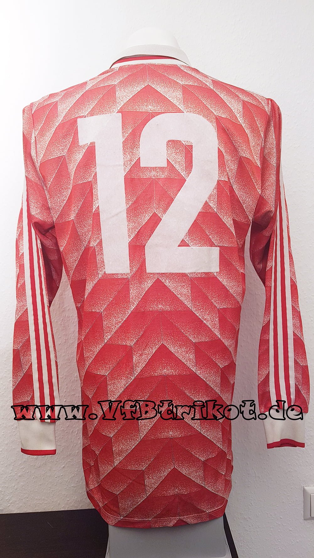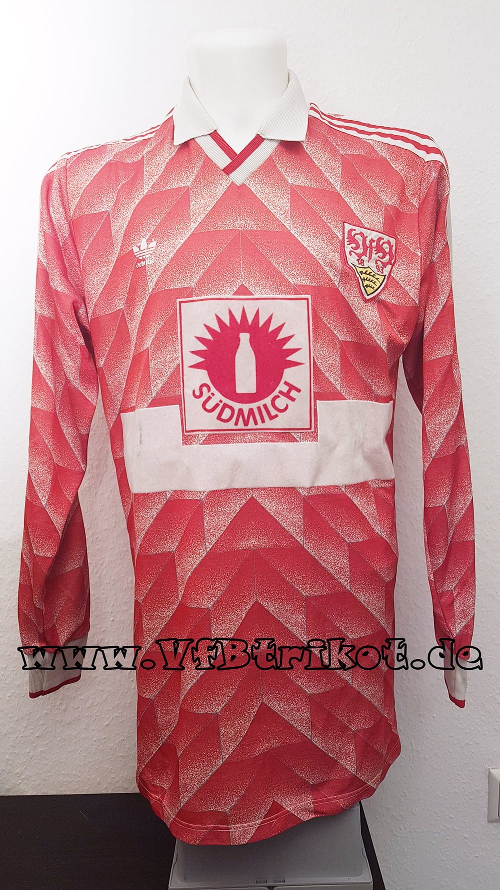 1988/89 – UEFA-Cup – VfB Stuttgart matchworn Trikot – Banyasz Tatabanya – VfB Stuttgart – rot – langarm – Sondertrikot – mit diesem Trikot wurde nur einmalig in Tatabanya gespielt