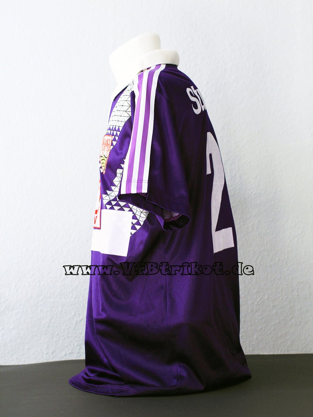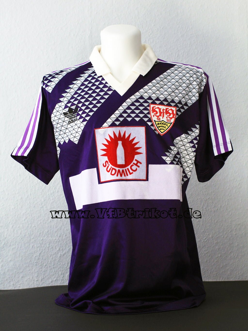 1990/91 – Bundesliga – lila – kurzarm – Dieses Kunstwerk an 90iger Design wurde einmalig beim Auswärtsspiel in Wattenscheid getragen. Das erste von 2 lila Trikots in der VfB Trikot Geschichte.