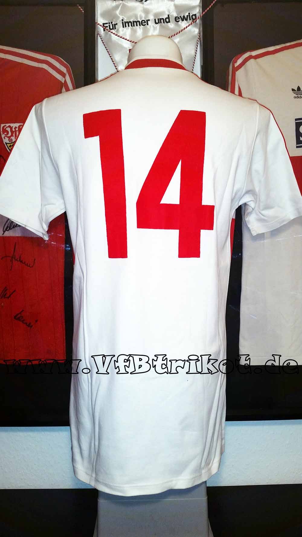1986/87 – VfB Stuttgart matchworn Trikot – Europapokal der Pokalsieger da ohne Stuttgart Schriftzug über der Nummer – Nummer 14 – Sanwald – weiß – kurzarm