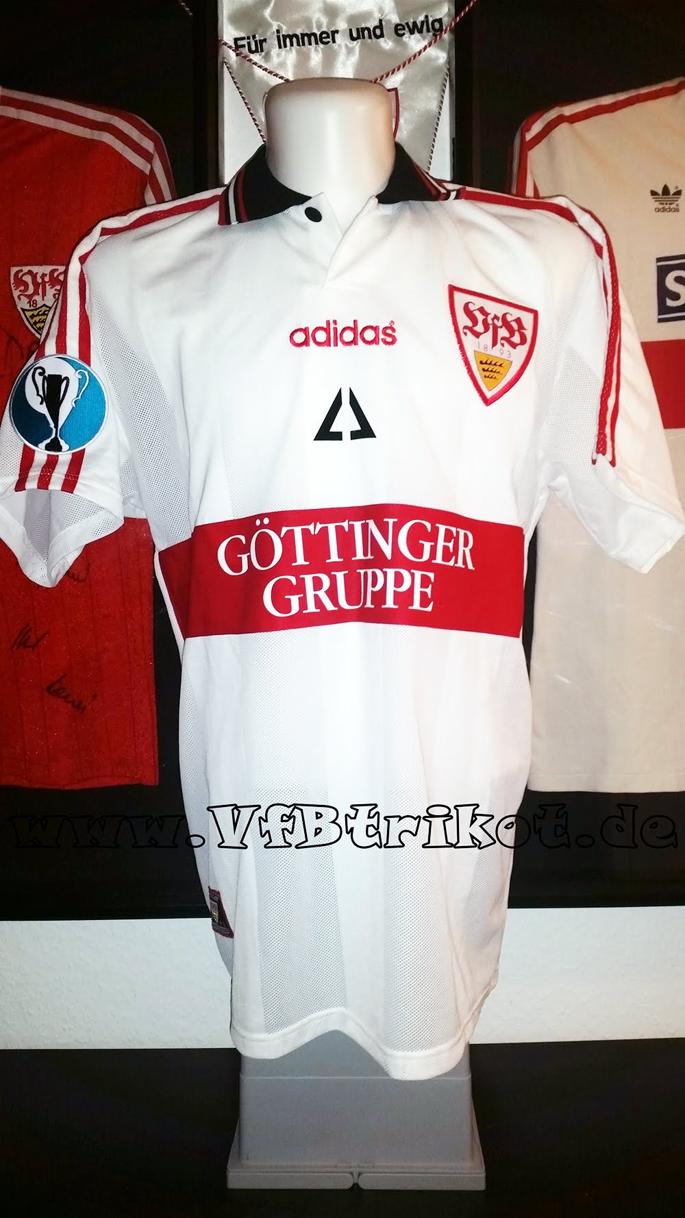 1997/98 - Gerhard Poschner - Europapokal der Pokalsieger Finale - weiß - kurzarm - mit diesem Patch wurde ausschließlich im Finale in Stockholm gegen den FC Chelsea gespielt. Außerdem ist sowohl der Schriftzug als auch das Logo vom Sponsor Göttinger Gruppe dünner und kleiner beflockt.